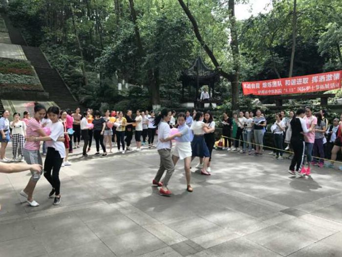 这是鲜花绚丽、轻舞飞扬的五月,白衣天使迎来了属于自己的节日——“5.12”国际护士节。为弘扬南丁格尔精神,培养护理人员的团队意识、竞争意识、合作交流能力,5月12日下午,泸州市中医医院在忠山公园开展以“挑战自我 熔炼团队 和谐进取 挥洒激情”为主题的趣味拓展活动。此次活动由护理部主任袁红、大内科护士长罗永萍带领,近200名护理人员参加。