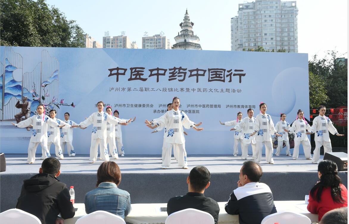为弘扬中医药文化,普及市民的健康知识,11月10日上午,由泸州市卫生健康委员会、泸州市总工会、泸州市中医药管理局、泸州市教育体育局主办,泸州市中医医院承办的泸州市第二届职工八段锦比赛暨中医药文化主题活动在白塔广场隆重举行。