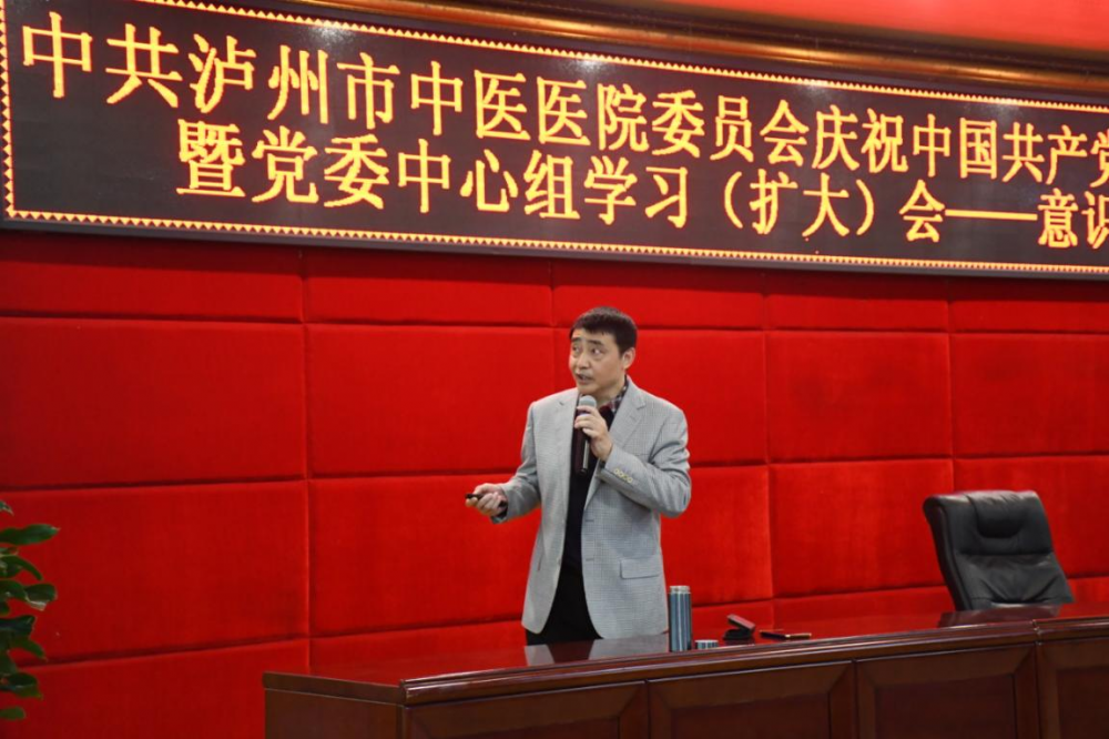 首先召开党委中心组学习(扩大)会议,会议由医院党委书记、院长郑海三主持,邀请四川长征干部学院泸州四渡赤水分院教务科科长、副教授周琴同志和市委宣传部二级调研员钟明权同志分别作党史教育和意识形态专题党课。