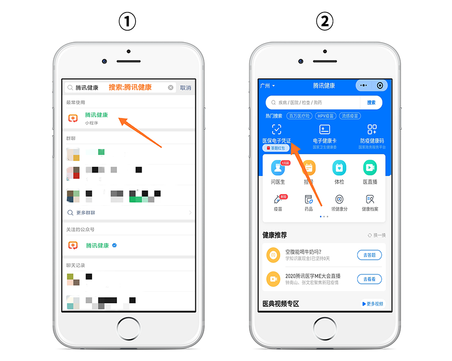 也可以微信搜索“腾讯健康”,进入腾讯健康小程序,点击“医保电子凭证”;