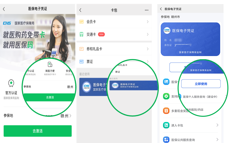 三是在微信点击“我-支付-医疗健康”,打开“腾讯健康”小程序,点击“医保电子凭证”激活;