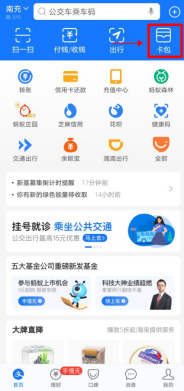 支付宝首页点击“卡包”