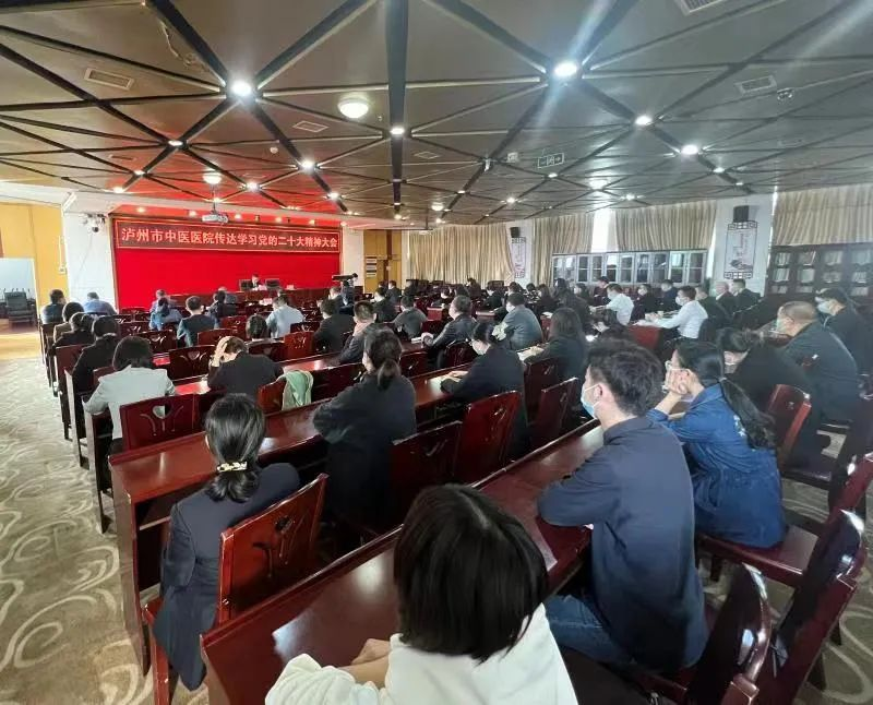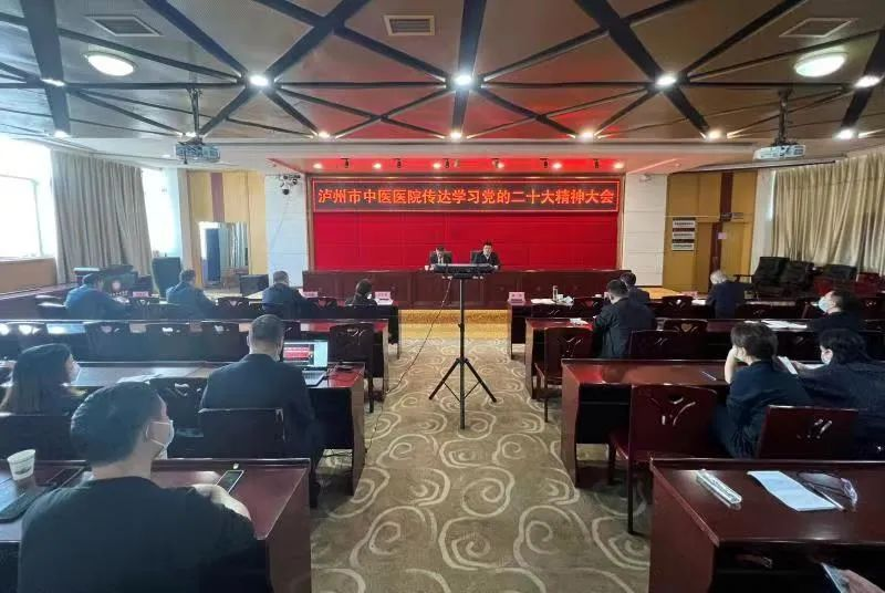 2022年11月2日下午,泸州市中医医院召开专题会议,传达学习党的二十大精神,安排部署医院宣传贯彻党的二十大精神工作。会议以视频会议形式召开,主会场设在大山坪院区门诊11楼学术报告厅,城南院区设立分会场。医院领导班子成员、全院党员干部参加会议。医院党委书记郑海三领学党的二十大报告精神以及传达省、市学习党的二十大精神大会精神,医院党委副书记、院长金忠主持会议。