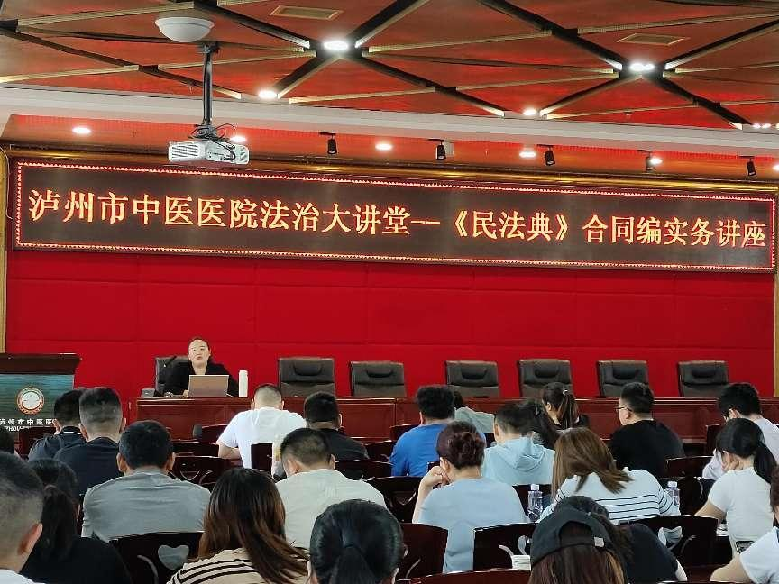2024年5月14日,泸州市中医医院法治大讲堂第二堂开课了!泸州市中医医院法律事务部邀请到了四川荆冠律师事务所高级合伙人、党支部书记王莉律师为我院相关职能部门就《民法典》合同编进行讲解。