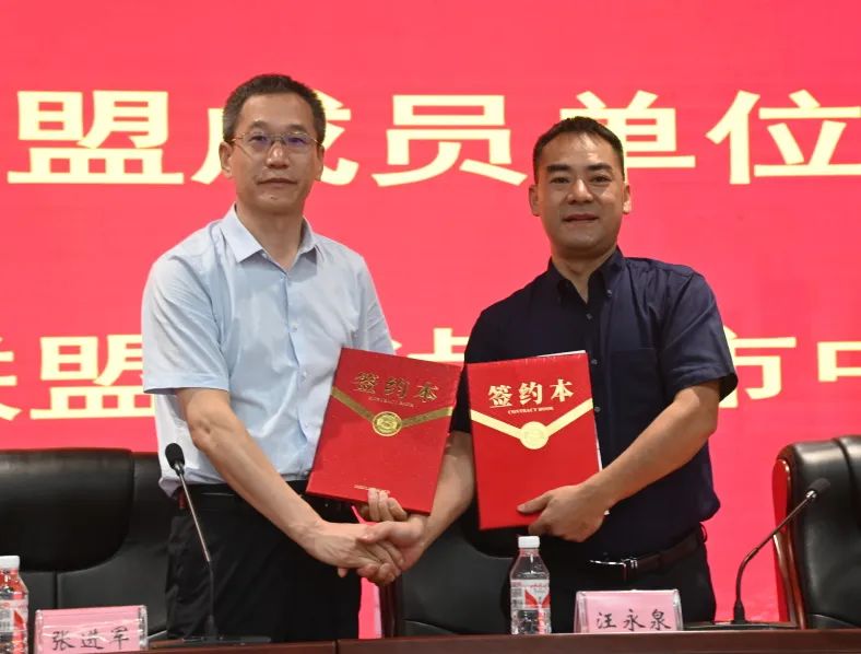 中国创伤救治联盟常委兼副秘书长张进军(左)与泸州市中医医院党委委员、副院长汪永泉签约