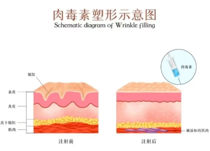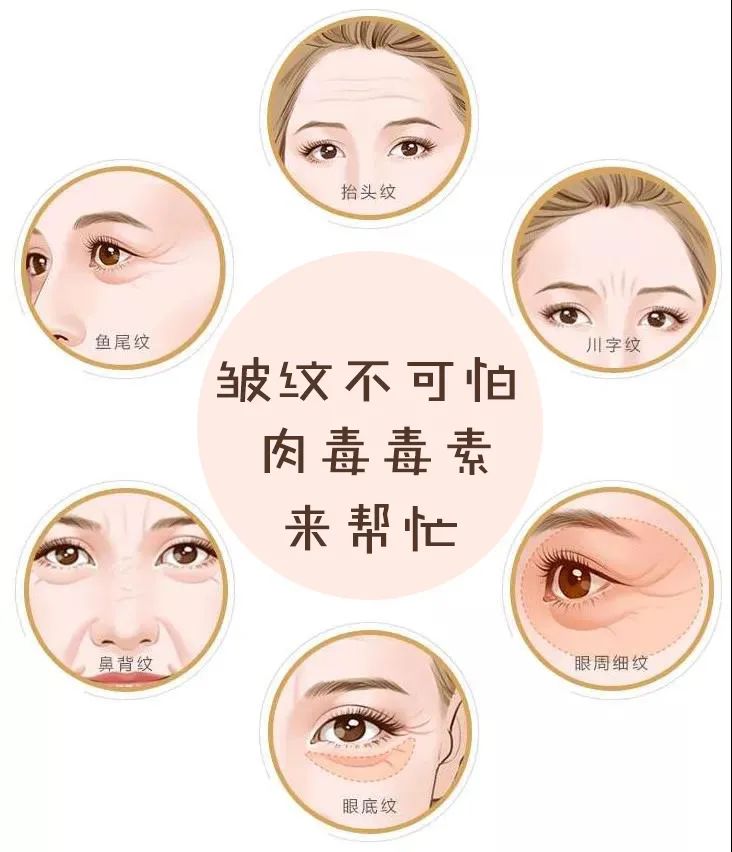 PS:通俗地说就是用“肉毒素”去麻痹紧绷的肌肉,肌肉放松了,皮肤自然就平整了。