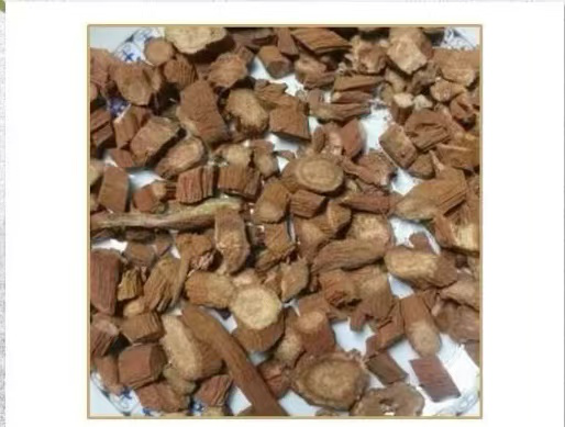 相较于正品丹参,表皮灰棕色,切面皮部红棕色,切面有多数导管孔