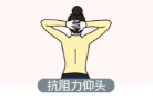抗阻力低头:手掌置于前额,头向前屈,同时手向后推,相互对抗,保持5秒后放松。