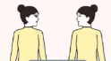 站立,双脚与肩同宽,双手背于身后。头部缓缓向左后上方及右后上方转动,如回首望月,感受侧前方的拉伸感。(每侧保持5-10秒,重复5次)