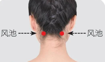 风池穴:后颈部,枕骨之下,两条大筋外缘的凹陷处。
