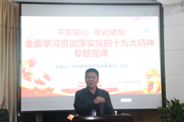 会上,医院党委书记、院长郑海三为大家上了一堂题目为《学习贯彻落实十九大精神》的专题党课,着重从把握十九大的时代背景、领会十九大的重大意义、理解十九大的重要内容等方面深刻讲解了如何学习贯彻党的十九大精神,进一步明确了未来医院的发展任务、工作重点以及党的建设要求。党课内容丰富,语言生动,赢得现场阵阵掌声。