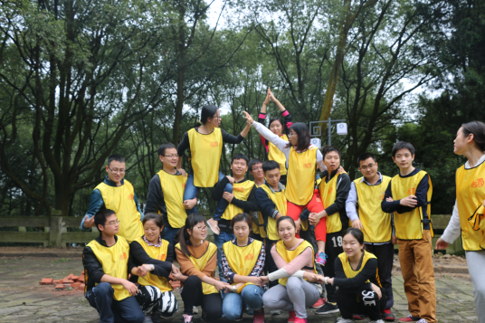 参加人员被分为红队和黄队两支团队,通过集体讨论,确定了各自的队名、队长和口号。活动中,大家相互鼓励、相互帮助、团结一心、共同完成了破冰、群龙取水、穿越电网、信任背摔、 挑战越障等一系列拓展项目,体现了浓厚的集体归属感和团队意识。每轮项目结束后,大家都会在一起相互商讨、争相发言,分享亲身体验的过程和成功的喜悦,尤其是学会了如何去沟通,如何去克服心理障碍,如何突破自我去释放正能量战胜困难。