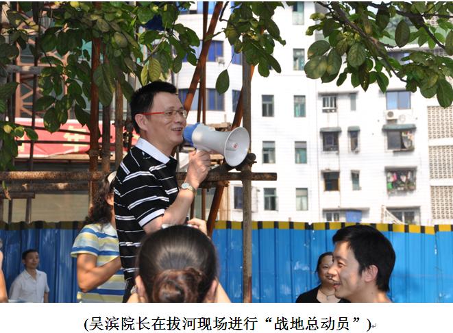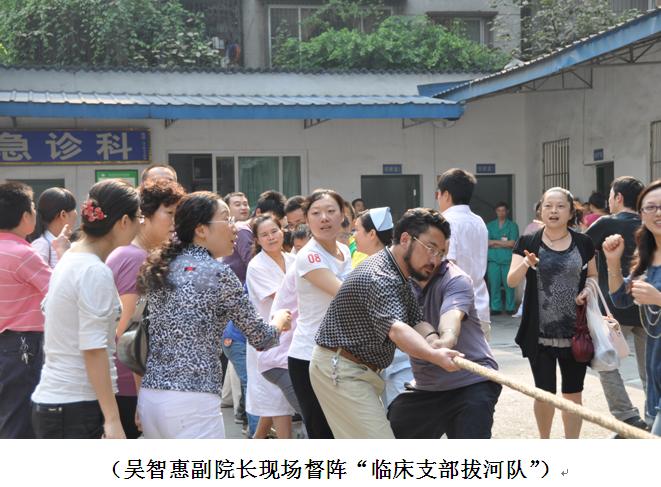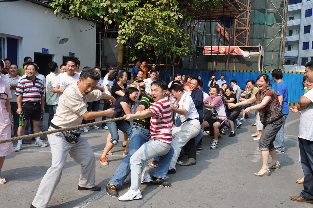 9月29日下午,医院党委、团委、工会联合主办了“庆国庆中秋游园活动”,全院职工(除值班人员外)参加了本次活动。在医院操场展开了一场精彩、激烈的“拔河比赛”,各队“大力士”憋足全身气力,在此起彼伏的呐喊声中,齐心协力而有节奏地开始“PK”。但见这些平时拿针、拿药的,文静、腼腆的小伙子和姑娘们,个个圆瞪双眼、涨红着双脸,拼命地紧拉绳索,有的鞋子蹬掉了,有的裤子磨破了……。欢声笑语响彻云霄,每个人都是那样的开心,因为大家知道:重要的不是名次,而是增进了大家团结奋进的协作力!这种团队精诚协作的精神正是中医医院人孜孜不倦所追求的精神!