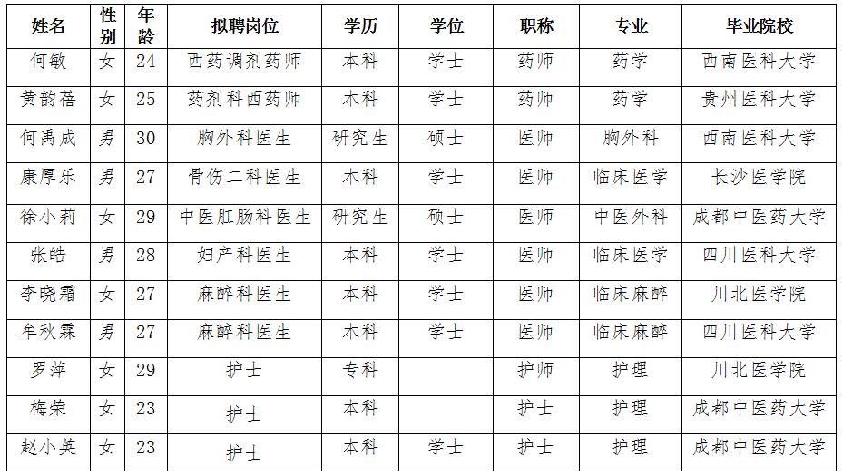 根据《泸州市中医医院编外人员管理办法》规定,经过笔试、面试、体检考察环节,拟录用何敏等十六人为我院编外职工,现将该十六名同志基本情况进行公示,公示期5个工作日,广大群众如有认为此十六名同志有不适合录用的问题,可以来电、来信或现场方式于2018年3月29日前,以真实姓名,实事求是地反映问题,并提供必要...